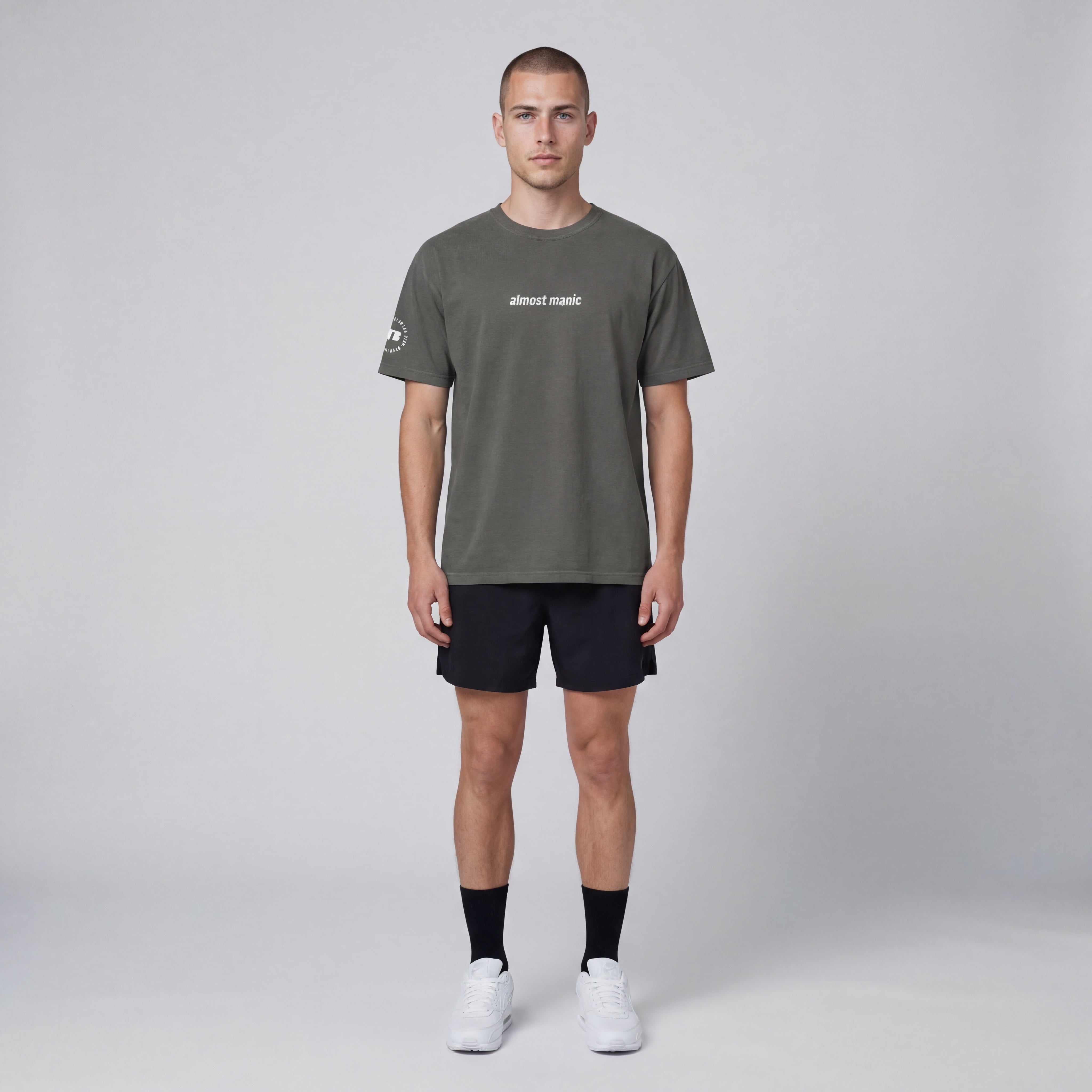 This unisex tee is made from heavyweight garment dyed cotton for a structured feel that softens over time. Durable, comfortable, and built for everyday wear. The circular Beyond The Blur graphic on the back and subtle sleeve detail give it a clean athletic identity inspired by movement and momentum.